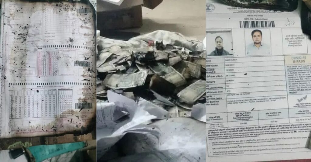 PMCH Hostel Fire : मंगलवार की देर रात पटना के पीएमसीएच के चाणक्य हॉस्टल में एक स्टूडेंट के रूम में आग (PMCH Hostel Fire) लग गई जहां उस वक्त यह बताया गया था कि शॉर्ट सर्किट के कारण यह आग लगी है लेकिन अब इस मामले ने एक अलग ही दिशा पकड़ ली है. दरअसल जिस रूम में आग लगी है, वहां से 10 से 12 लाख रुपए के नोट जले हुए पाए गए हैं. इतना ही नहीं इस मामले ने तूल तब पकड़ लिया जब नीट यूजी परीक्षा के जले हुए कई एडमिट कार्ड भी वहां से बरामद हुई.